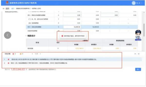 1、若系统出现“填写校验不通过”提示(如下图),则纳税人必须根据左下角(红色)提示正确修改表单内容后,才能提交。